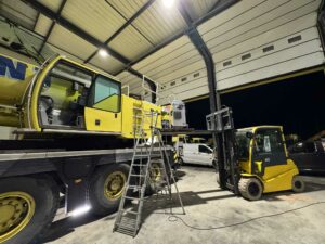 Ici nous sommes intervenu afin de climatiser une cabine de pilotage de grue mobile qui n’en été pas équipée d’origine.